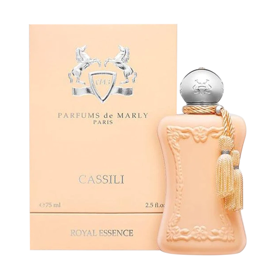 Parfums de Marly Cassili là nước hoa thuộc nhóm hương Hoa cỏ được ra mắt năm 2019 và có nồng độ Eau de Parfum. Cassili mang hương thơm của trái cây nhiệt đới tươi sáng, những cánh hoa vàng gợi cảm, mịn màng như nhung.